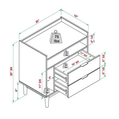 Be the first to review “2pk Mid-Century Modern Solid Wood 2 Drawer Storage Nightstands – Saracina Home” Cancel reply
